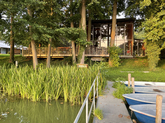 Uns stehen Zimmer, überwiegend mit direkten Zugang zur Wiese und See und einer kleinen Terrasse, ein wintergartenartiger Essraum, eine Restaurant-Terrasse und ein Yogaraum mit Blick zum See zur Verfügung. Weitere Informationen zu Zimmern: www.kunstortlehnin.de