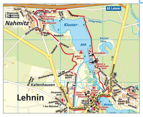 Auf den Bildern: Klostersee, Gäste- und Seminarhaus, Skulpturenpark, Feuerstelle am See, Ufercafe, Rundweg Klostersee, Karte Lehnin und Umgebung
